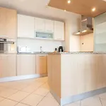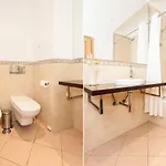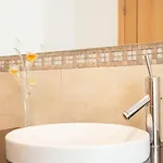 To ensure a comfortable stay, amenities such as ironing facilities and air conditioning, along with a TV set, are provided for guests. The apartment is also furnished with a sofa set. A bathroom includes a bidet, a separate toilet, and a bath, as well as a hair dryer and bath sheets.